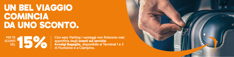 Con easy Parking ottieni il 15% di sconto sul servizio di Avvolgi Bagaglio!